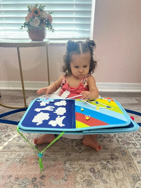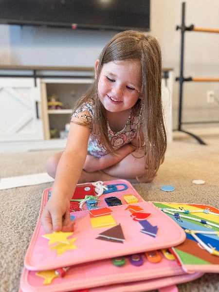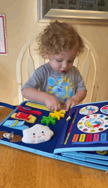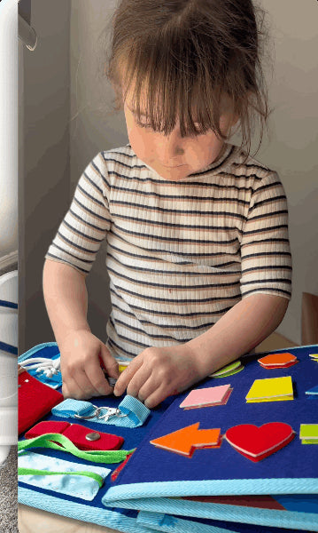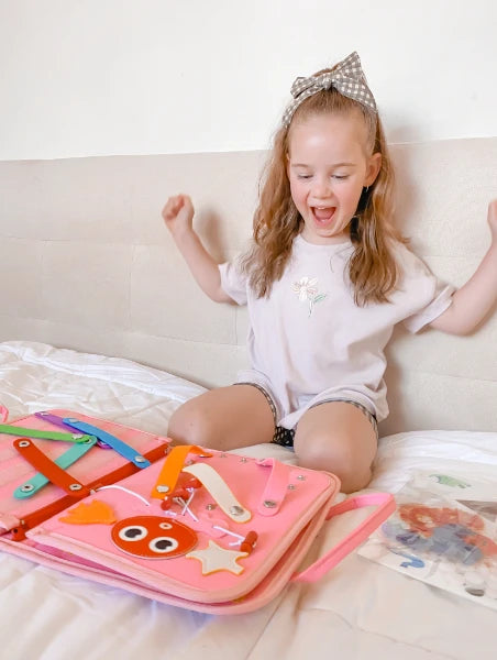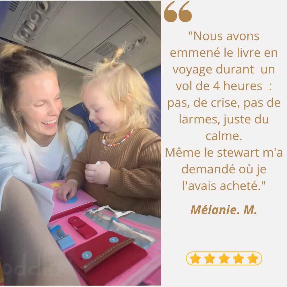Le livre d'activités résout ce problème en leur proposant une activité sensorielle et sécurisée : des boucles à manipuler, des lacets à nouer, des puzzles à résoudre. Cela apaise leurs émotions grâce à l'occupation de leurs mains.
