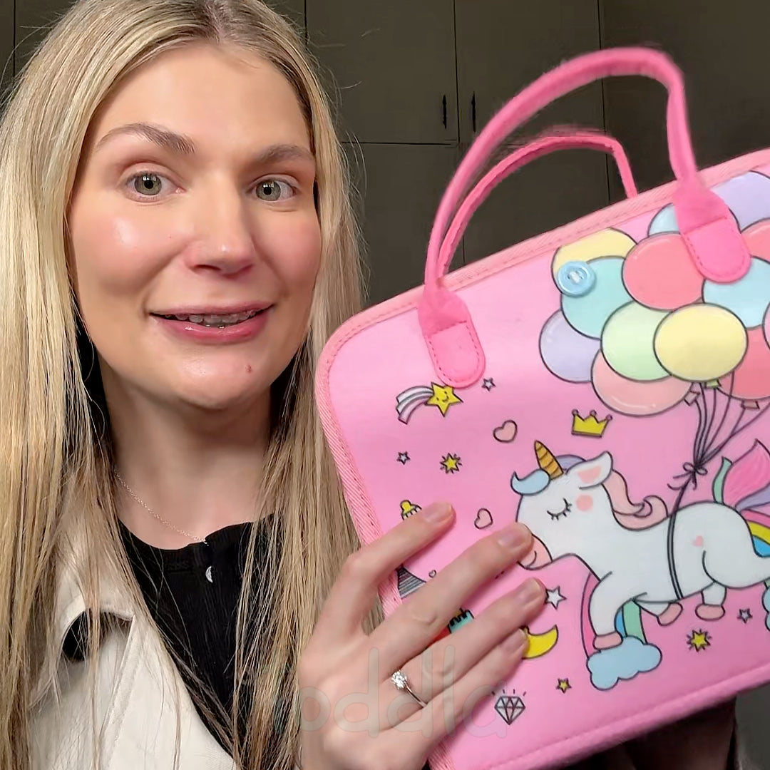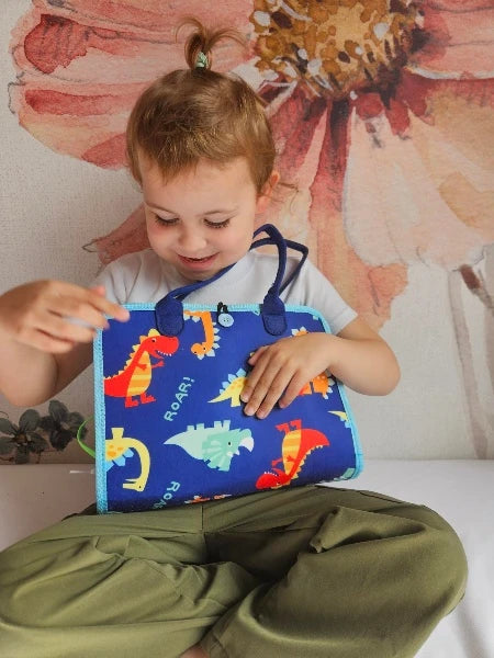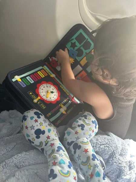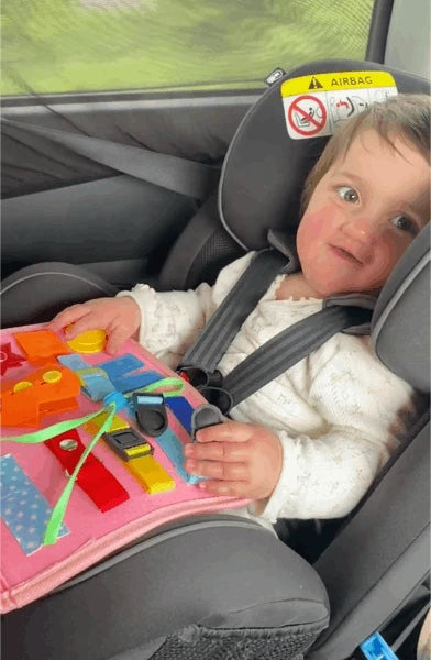 Imaginez : au lieu de crises de colère, votre enfant joue tranquillement avec les fermetures éclair, boucles de ses vêtements, pendant que vous respirez enfin.