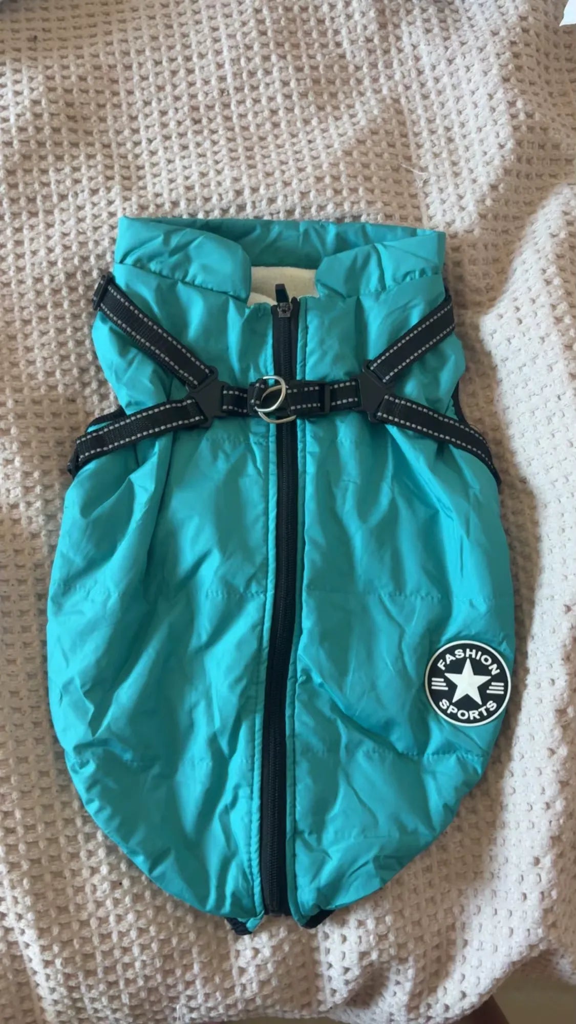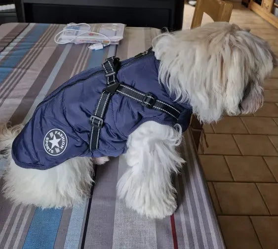 Le manteau est bien chaud, facile à enfiler et le harnais intégré est vraiment pratique. Mon chien est à l’aise et protégé, même par temps froid. Je recommande sans hésiter.